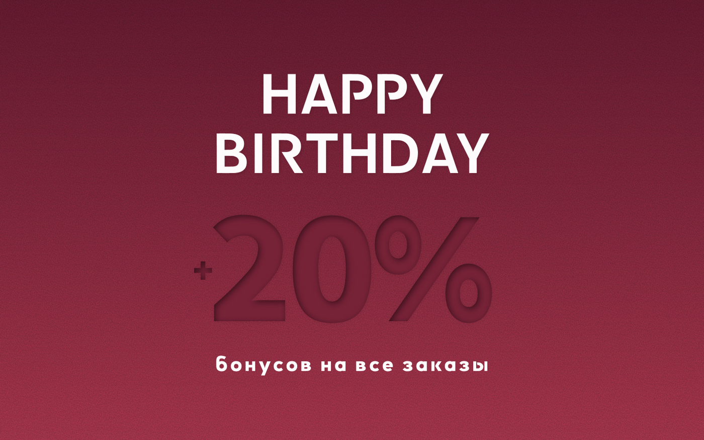 20% бонусов на все заказы в День Рождения и 7 дней после
